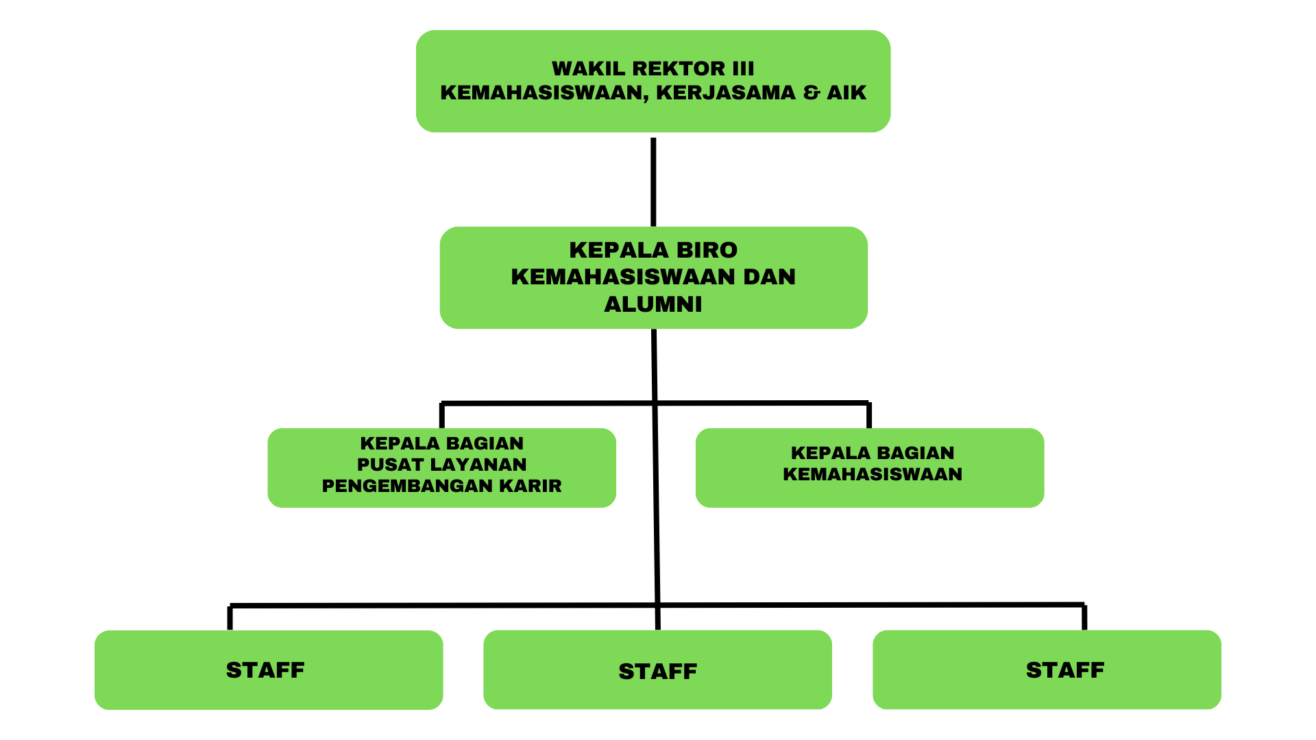 Struktur kelembagaan Biro Kemahasiswaan dan Alumni Universitas Muhammadiyah Lampung, sebagai berikut :